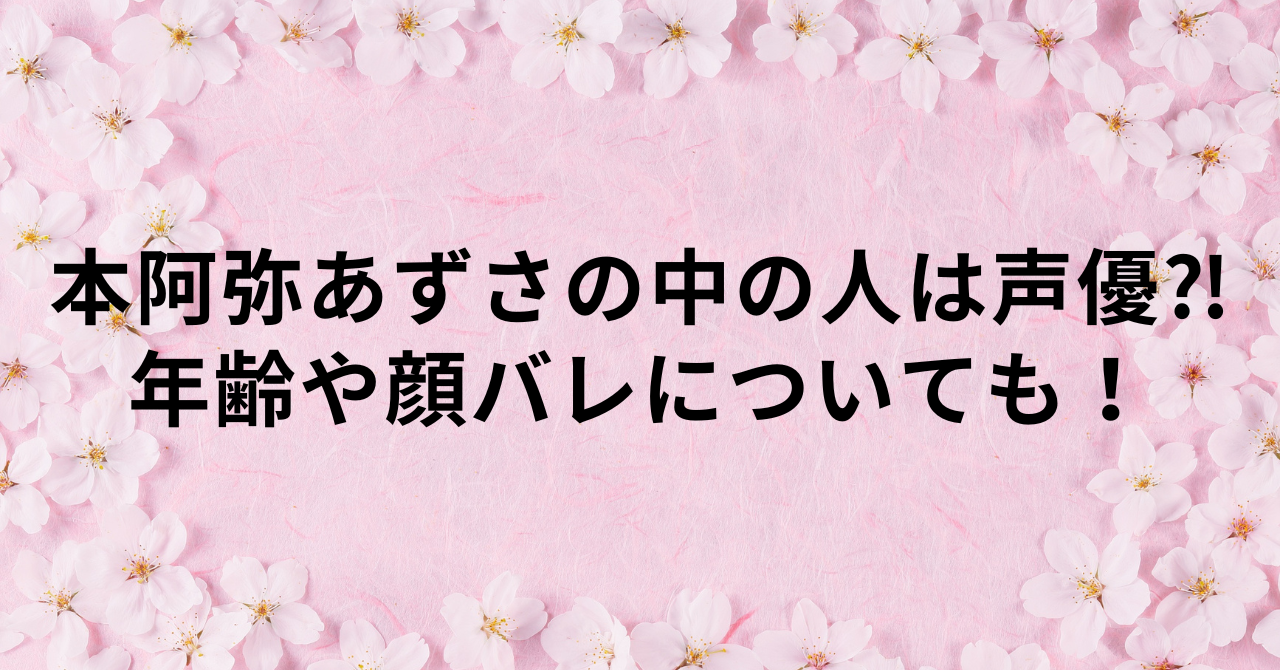 この記事では、本阿弥あずささんの中の人に関する声優説や年齢の推測、さらに気になる顔バレの有無についても詳しくまとめました。